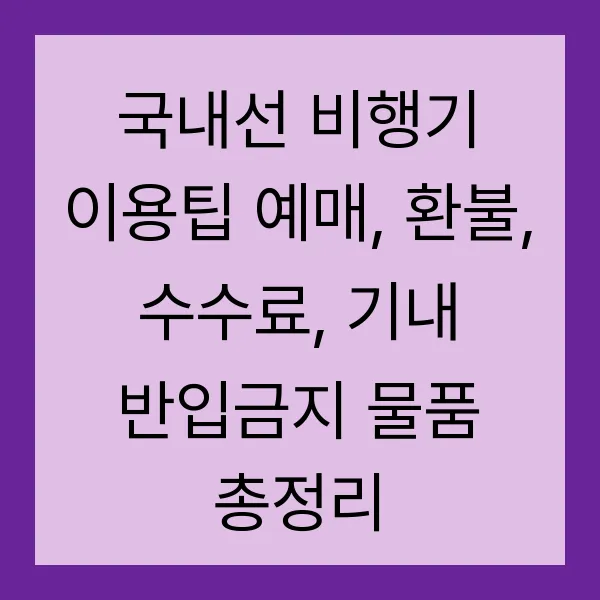 국내 여행을 계획 중이신가요? 항공권 예매부터 수하물 규정, 기내 반입금지 물품까지, 꼼꼼한 준비는 즐거운 여행의 시작입니다. 이 글에서는 국내선 비행기 이용에 필요한 모든 정보를 총정리하여 제공합니다. 예매 팁, 환불 규정, 수수료, 기내 반입금지 물품 등 핵심 정보를 통해 스마트하고 안전한 비행기 여행을 준비하세요! 효율적인 여행 경비 관리와 안전 수칙 준수를 위한 필독 가이드, 지금 바로 확인해보세요!