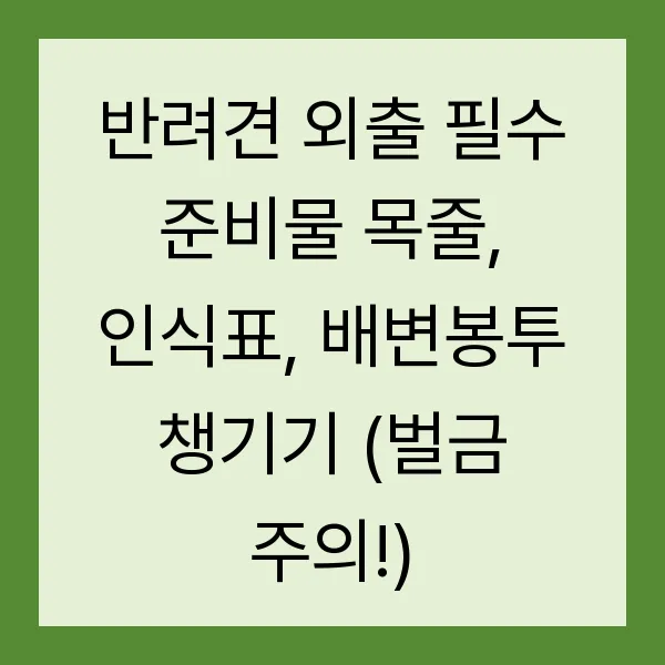 반려견과의 행복한 외출, 꿈꿔왔던 드넓은 공원에서의 자유로운 산책! 하지만 잠깐! 목줄, 인식표, 배변봉투는 챙기셨나요? 이 세 가지는 단순한 준비물이 아닌, 법으로 정해진 필수 준비물 입니다. 미준수 시 최대 50만 원의 과태료 가 부과될 수 있다는 사실, 알고 계셨나요? 지금 바로 반려견 외출 필수 준비물과 관련 법규를 확인하고, 안전하고 쾌적한 산책을 즐겨보세요! (키워드: 반려견 외출, 목줄, 인식표, 배변봉투, 과태료, 동물보호법)