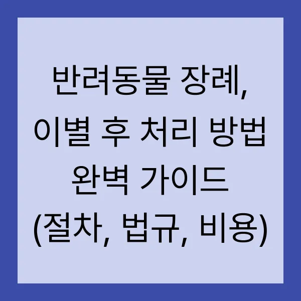 사랑하는 반려동물과의 이별은 마음 아픈 순간입니다. 이 가이드는 2025년 기준으로 반려동물 장례 절차, 관련 법규, 비용 정보를 제공하여 슬픔 속에서도 존엄한 이별을 준비할 수 있도록 돕습니다. 반려동물의 마지막 길을 책임감 있게 준비하고자 하는 모든 분들께 든든한 길잡이가 되어드리겠습니다. 반려동물 장례, 이제 걱정 마세요!