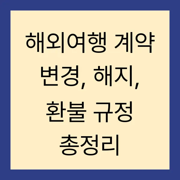 해외여행! 드디어 꿈에 그리던 여행을 떠나시나요? 설레는 마음으로 준비하는 해외여행, 하지만 예상치 못한 변수는 언제든 발생할 수 있죠. 혹시 모를 상황에 대비하여 계약 변경, 해지, 환불 규정을 미리 확인 해 두는 것이 현명합니다. 국외여행 표준약관 및 소비자분쟁해결기준을 토대로 꼼꼼하게 정리한 이 글이 여러분의 안전하고 즐거운 여행에 도움이 되길 바랍니다. (해외여행, 계약변경, 해지, 환불, 여행계약, 표준약관, 소비자분쟁해결기준)